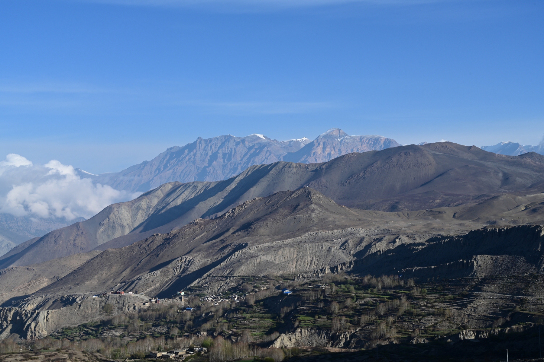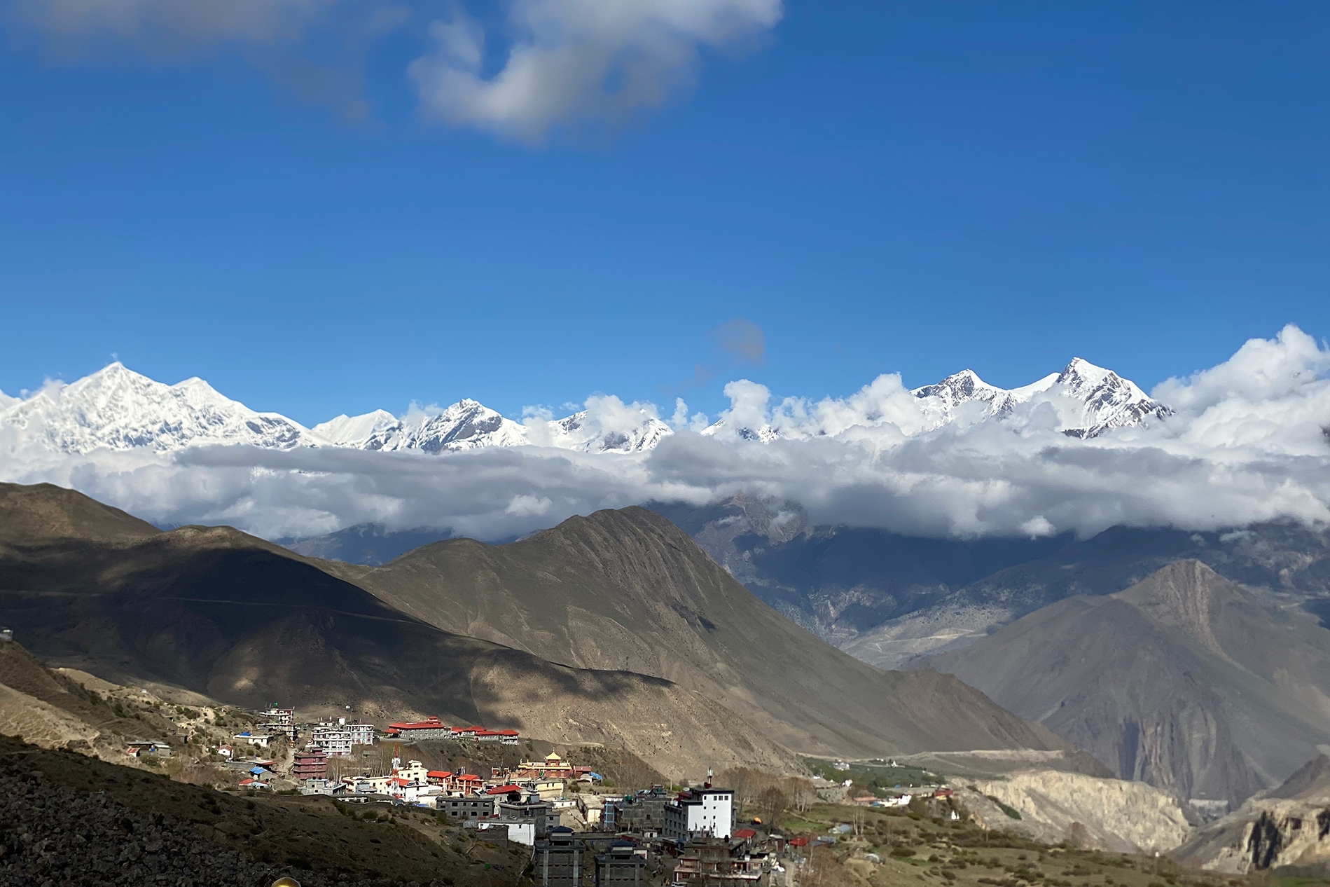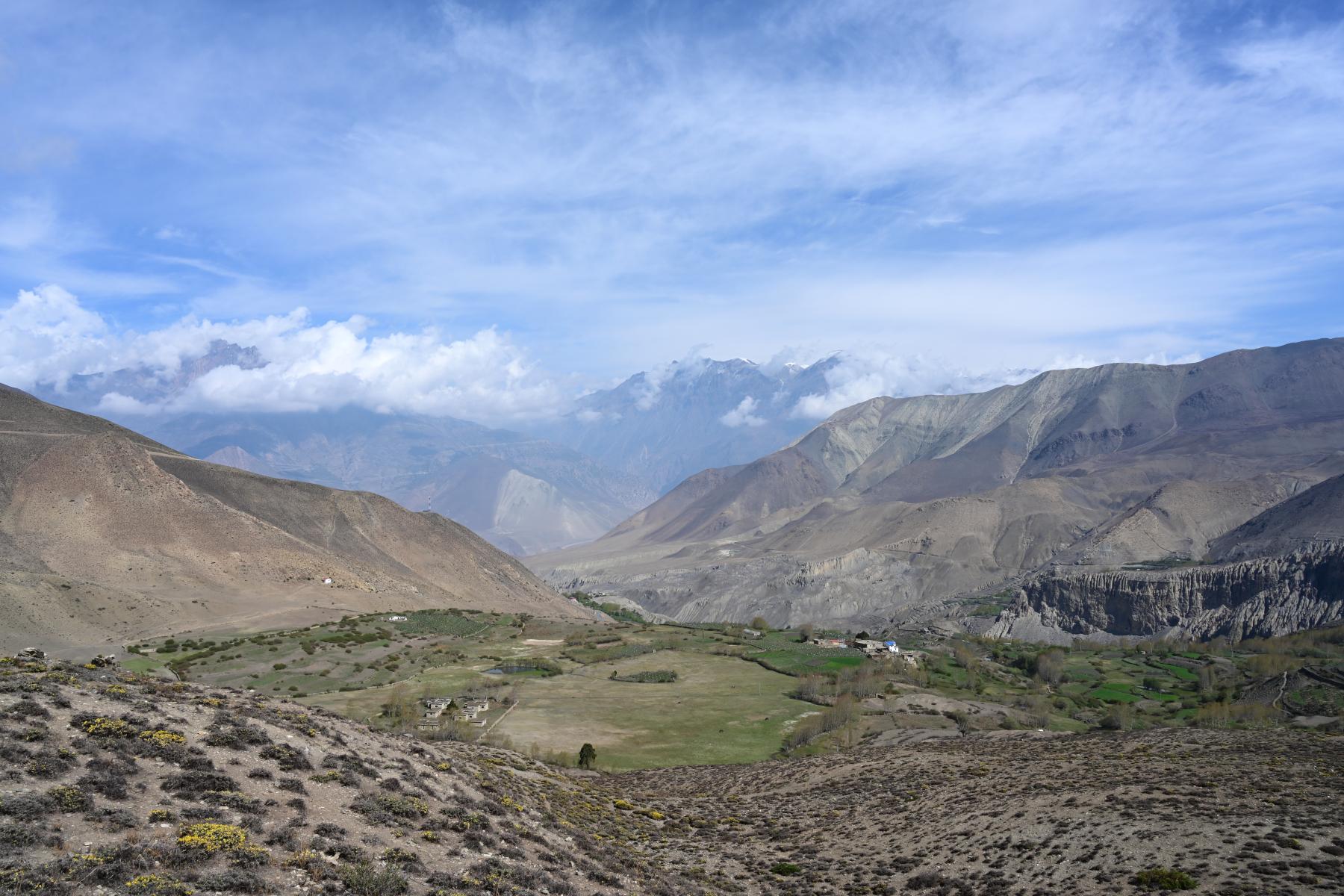 Continue your trek, descending through the Kali Gandaki Valley. Pass through the villages of Tukuche and Larjung, known for their traditional architecture and cultural significance. Enjoy views of the Nilgiri peaks and the Dhaulagiri massif. Reach Kalopani, a picturesque village nestled in the valley. Overnight stay in Kalopani.