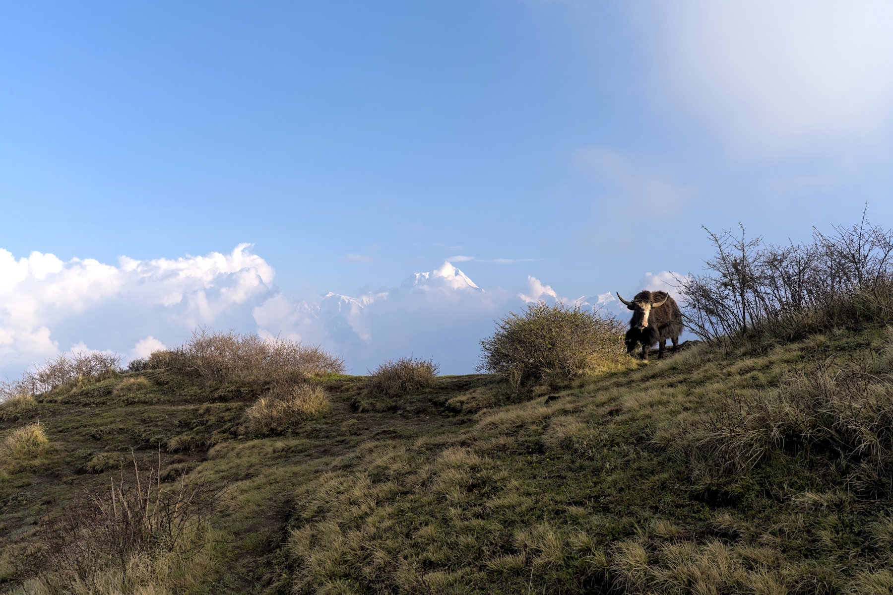 Today will be the most difficult day of your trek for sure, but also the most rewarding. During the first couple of hours, you will walk along a mountain ridge with stunning views of mountains in the Dhaulagiri and Annapurna Ranges, including Dhaulagiri, Tukuche, Nilgiri, Annapurna I, Annapurna Fang, and Annapurna South. The trekking trail is a relatively well-trodden dirt path which passes by many small huts used by local yak farmers. It is likely you will encounter many yaks during this stretch of the trek, but these yaks are peaceful animals that won't bother you if you don't bother them.