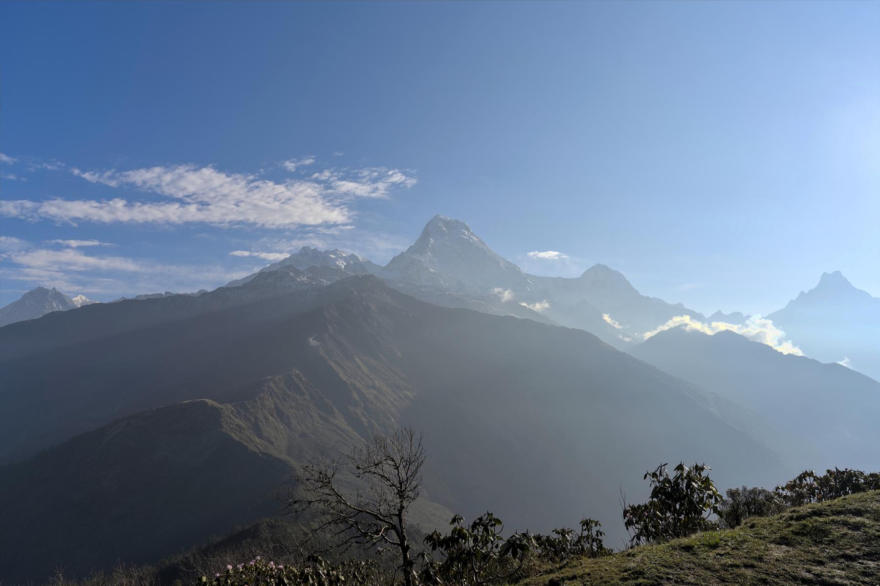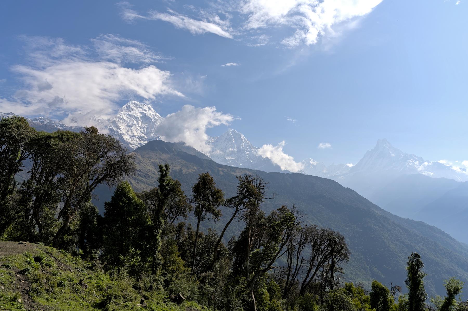 After enjoying the views of Fish Tail and the Annapurna Range during breakfast, we will begin the trek to Dobato. The first hour of the trek is a leisurely walk through thick, lush jungles filled with local trees, plants, and wildlife. The trail during this period is mostly "Nepal flat," meaning a little bit up, a little bit down, but generally around the same altitude. Soon the jungle will open up and you will be treated to views of Annapurna South, Hiunchuli, and Fish Tail.