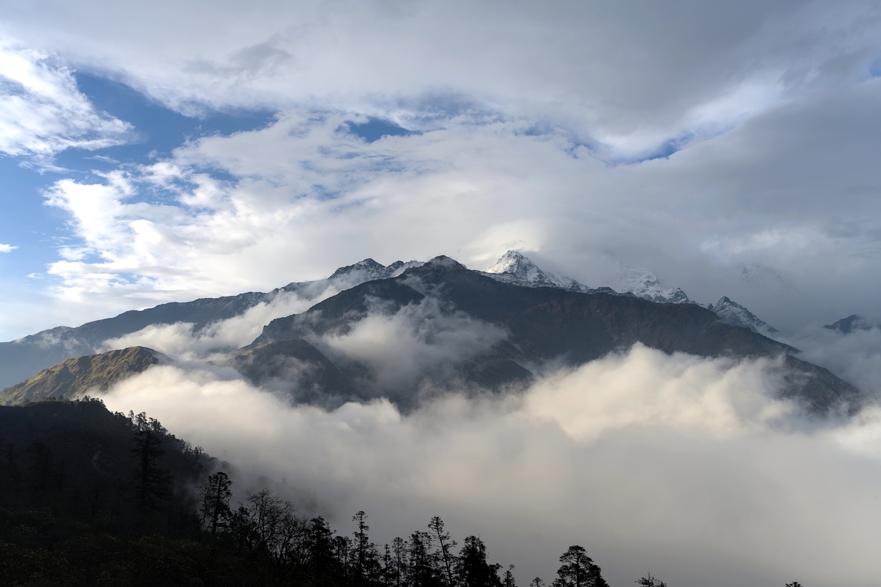 After enjoying the views of Fish Tail and the Annapurna Range during breakfast, we will begin the trek to Dobato. The first hour of the trek is a leisurely walk through thick, lush jungles filled with local trees, plants, and wildlife. The trail during this period is mostly "Nepal flat," meaning a little bit up, a little bit down, but generally around the same altitude. Soon the jungle will open up and you will be treated to views of Annapurna South, Hiunchuli, and Fish Tail.