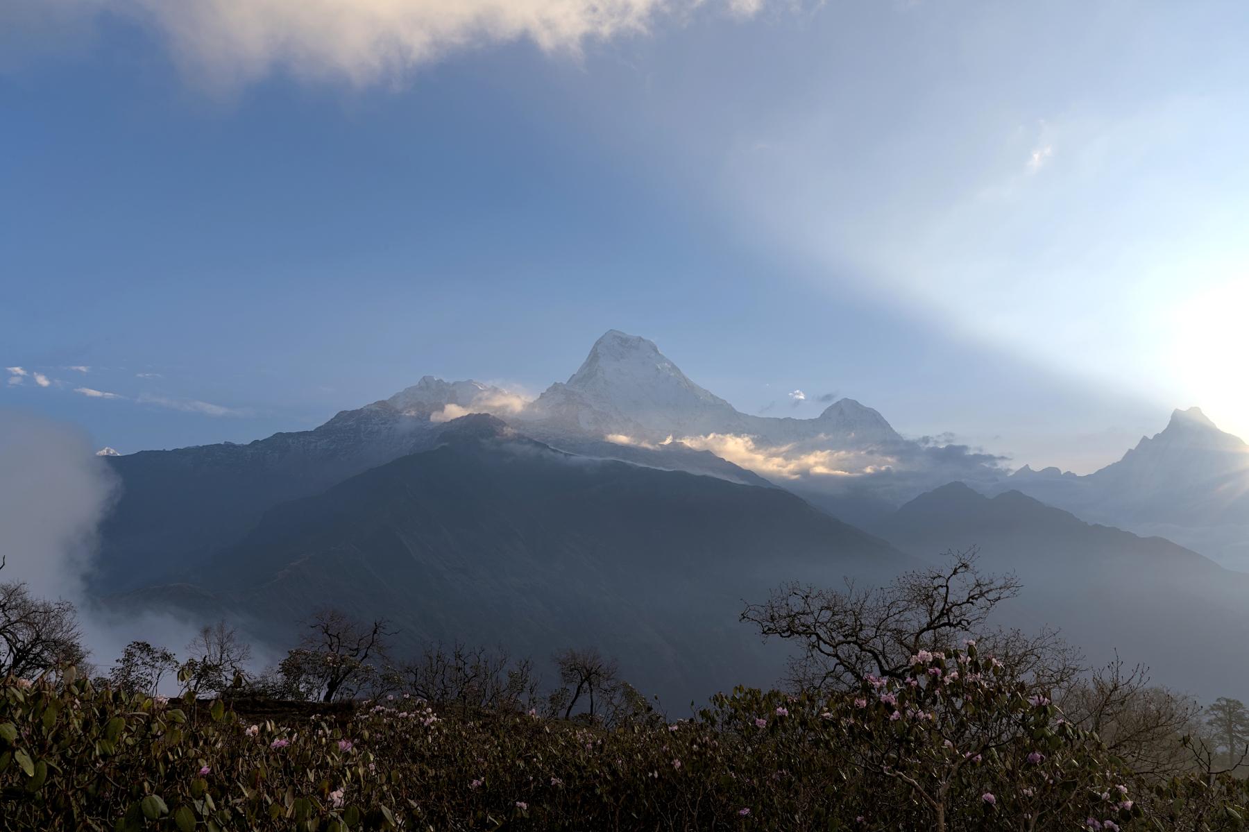 You will wake up this morning before sunrise and begin the walk up Poon Hill in darkness. Exactly which time is the best time to leave depends upon the season, but it will be at least an hour before the scheduled time for sunrise. The hike will begin in complete darkness, so a flashlight/torch or headlamp is recommended. The walk to the summit of Poon Hill takes approximately 30-45 minutes and entails an elevation gain of over 350 meters. However, compared to what you've already hiked so far in your trek, this will be no problem!